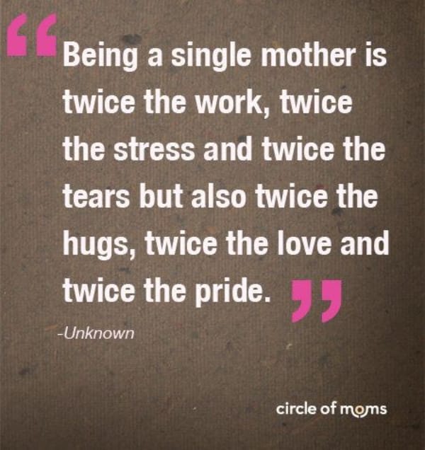 43+ Best Single Mom Quotes. Discover and share best single mom quotes. Single moms sayings and quotes · being a single parent is twice the work, twice the stress and twice the tears but also twice the hugs, twice the love and twice . 29 encouraging quotes for single moms, from single moms. Explore our collection of motivational and famous quotes by authors you know and love. Inspirational single mom quotes will make you look at life differently and help you live a meaningful life. Being a single mother is twice the work, twice the stress, and twice the tears, but also twice the hugs, twice the love, and twice the pride.. The road of parenthood is often lonely and dark for a single mom. "it is a challenge to be a mother and a father to your child and . So, telling her she's going a great job and encouraging her strength are great . She has to have four arms, four legs, four eyes, two hearts, and double the love.